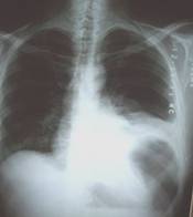 Se le realiza ultrasonido abdominal encontrándose gran dilatación gástrica con abundante contenido líquido en su interior. En la radiografía de tórax posteroanterior (figura 1) y en la simple de abdomen se observaba una gran distensión gástrica con un nivel hidroaéreo amplio que ocupaba todo hipocondrio izquierdo elevando significativamente el hemidiafragma.