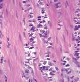 Estudio histopatológico: Carcinoma gástrico difuso tipo linitis plástica. Micro: células discohesivas que infiltran a través de la pared gástrica como células individuales embebidas en un estroma desmoplástico.